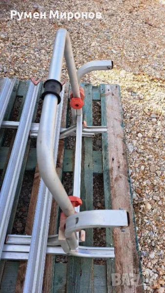 Продавам употребяван алуминиев багажник за четири велосипеда. Размери на снимките. Цена 350 лева.