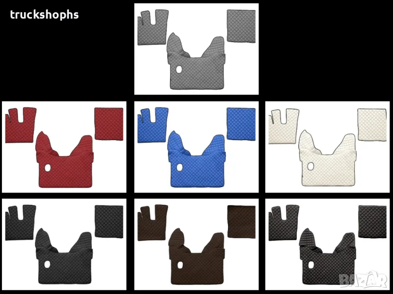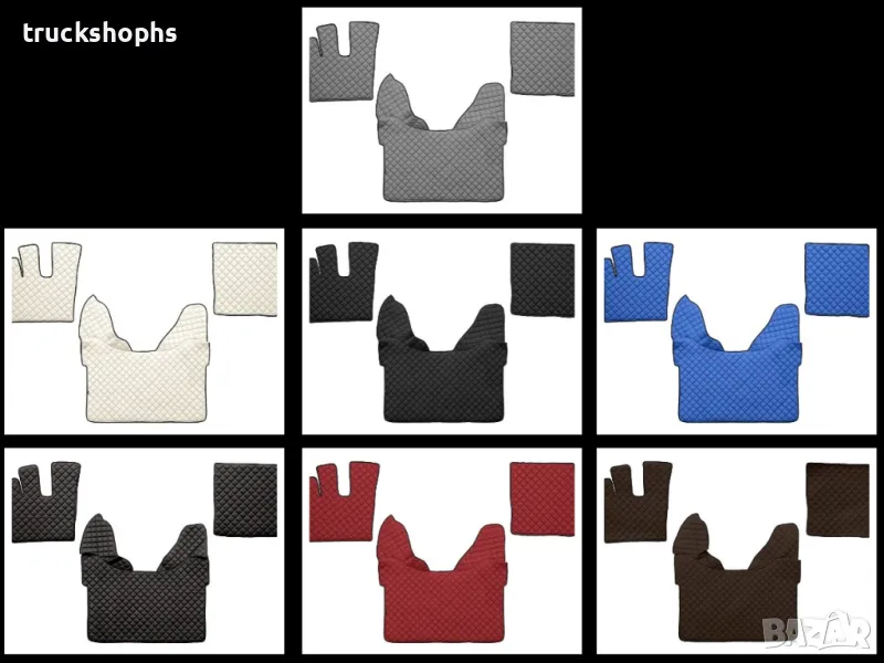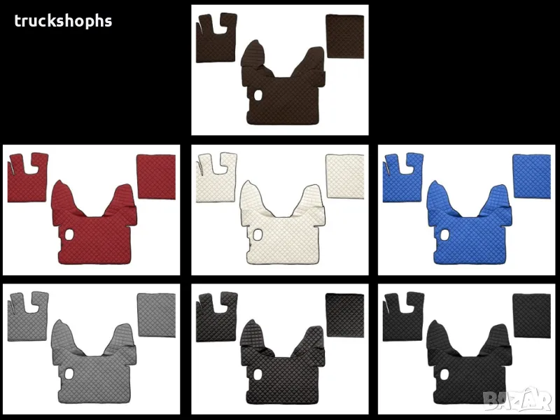 Стелки,тапицерии,маси и завеси заDAF XF106 . Стелките,тапицериите и масите осигуряват уникален стил и елегантност на вашия камион. Най-висококачествените материали, внимателното завършване и иновативните решения характеризират нашите аксесоари. За професионалния шофьор на камион кабината е синоним на дом. Ние знаем, че е толкова важно да се чувствате във вашия камион като в собствен дом. Капитонираните подови стелки,тапицерии и маси, изработени от синтетична кожа, правят вашия интериор гостоприемно място.