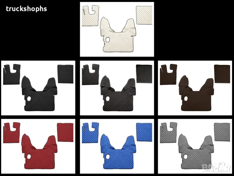 Стелки,тапицерии,маси и завеси за DAF XF105. Стелките,тапицериите и масите осигуряват уникален стил и елегантност на вашия камион. Най-висококачествените материали, внимателното завършване и иновативните решения характеризират нашите аксесоари. За професионалния шофьор на камион кабината е синоним на дом. Ние знаем, че е толкова важно да се чувствате във вашия камион като в собствен дом. Капитонираните подови стелки,тапицерии и маси, изработени от синтетична кожа, правят вашия интериор гостоприемно място.