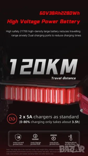 • МАКСИМАЛЕН ПРОБЕГ до 120 км