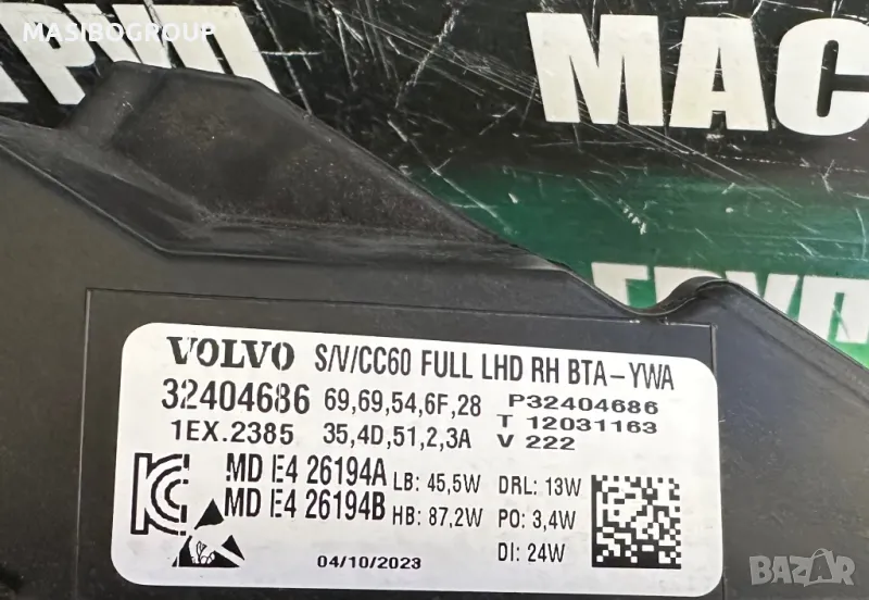 HIGH BEAM за Volvo S60 V60,2019-2022год.,цената е за БРОЙ необорудван фар с ДДС,имат лека забележка по едно счупено уше,повече информация ще получите на посочения телефон!