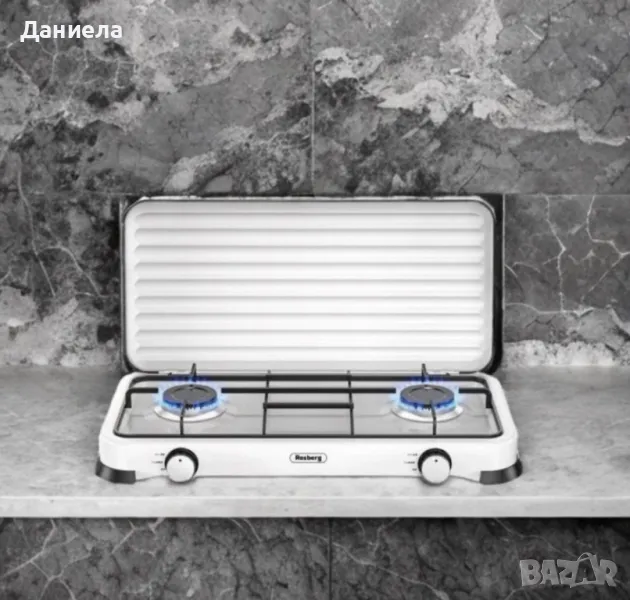 Двоен газов котлон с капак; Боядисан панел от въглеродна стомана. Горелка от лят алуминий с емайлирана капачка. Метална скара за тиган. По-добър пламък и по-бързо готвене. Икономичен и мощен. Висококачесвен, безопасен и лесен за използване. Мощност: 2х2.2 kWh; Тип газ: Бутан, Пропан и техните смеси; Налягане: 30 mbar; Размер: 58х28х6 см; Уредът е предназначен за използване на открито и проветливо място! Задължително прочетете инструкциите преди да изпозлвате уреда! ВНИМАНИЕ: Някой от частите може да са горещи! Съхранявайте и използвйте далеч от деца! Цвят: Черен, бял; 24 месеца гаранция.