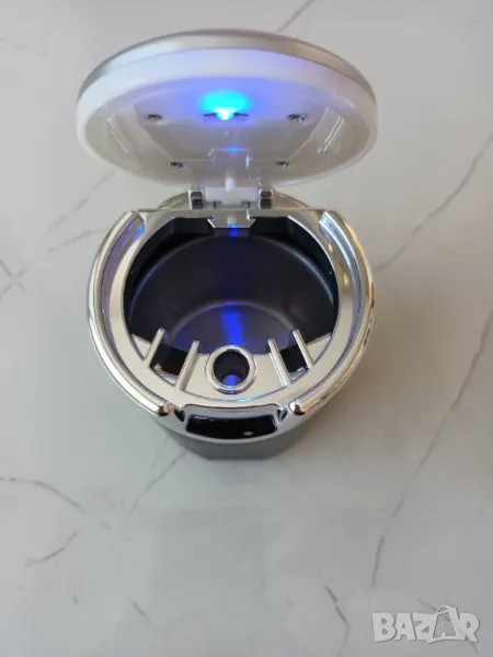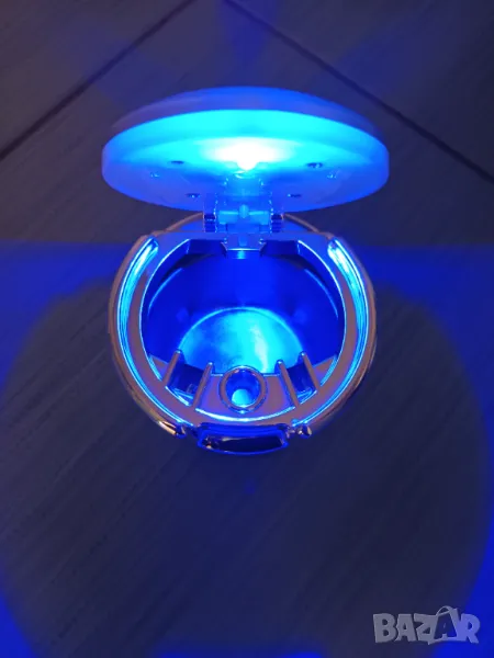 Продавам нов светещ пепелник с лого на Audi. Подходящ както за автомобил, така и за офиса или дома. Преносим, много лек. Има лед лампичка, удобни отвори за поставяне на цигари. Затваря се плътно и не позволява лошите миризми да излизат навън. Размери височина 9см, ширина 6,7см.
