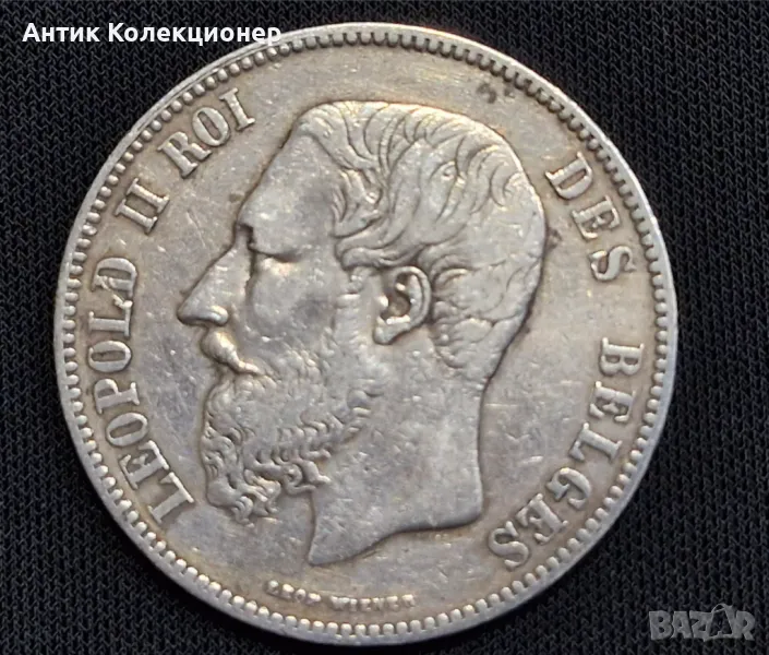 Монета Сребро, 5 франков Бельгия, 1867, Леопольд II, VF. → Обява 49589960