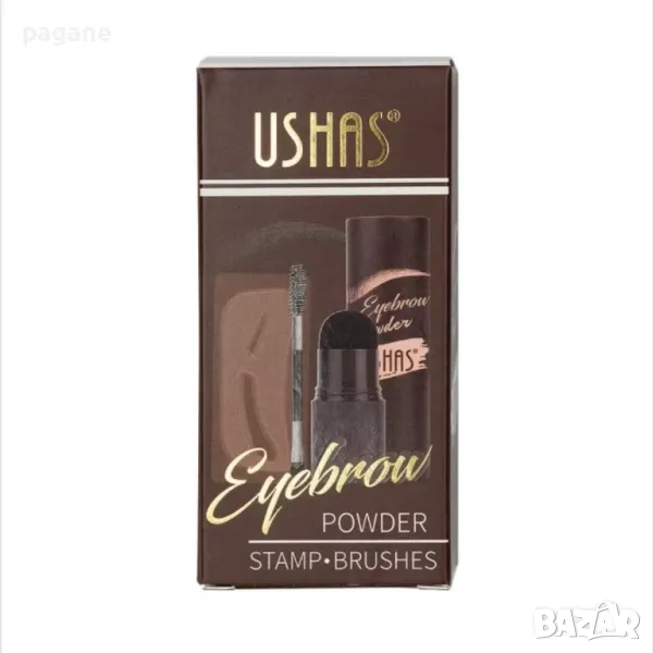 Пудра за вежди Ushas 3 в 1с шаблони и четка, тъмно кафяв → Обява 49590795