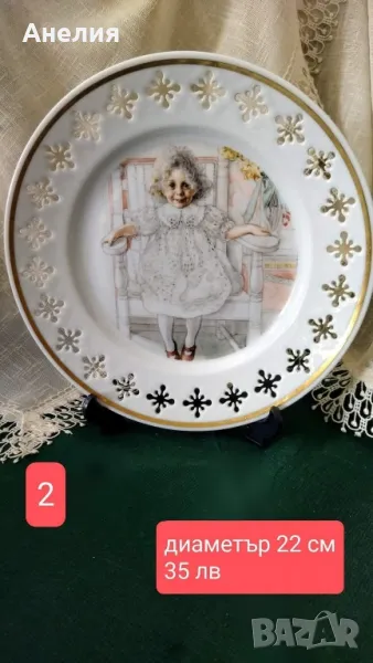 Чинии за стена ажурени , лимитирана серия на Карл Ларсон - шведски художник, считан за най-известния шведски живописец. Неговите идилични платна, акварели и рисунки изобразяват живота на семейството му. Той заедно с жена си Карина поставят една тенденция за шведския дом, която достига дори в наши дни, особено за жителите на Швеция. В някои сайтове се споменава, че ИКЕА са взели техния стил от неговите рисунки - деца със сламен цвят на косите, тичащи върху раирани килими, постлани върху необработени чамови подове.Той рисува с приятни тонове, неговата къща и семейство от 8 деца ;той и неговата съпруга са обзавели тяхната къща с много уют.Роден на 28 май 1853 г. Стокхолм, ШвецияПочинал на 22 януари 1919 г. Фалун, Швеция