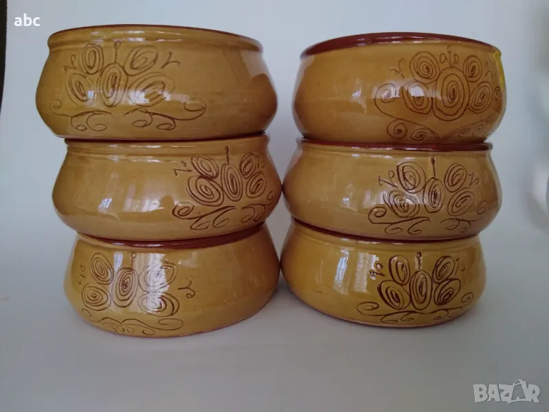 Българска битова керамика изработена преди 40 г.Купи за супа или салата размери дъно 12см. отвор 11см. дълбочина 4см. Нови неползвани.Само лично предаване.