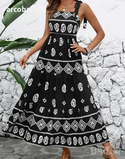 Ежедневна дамска рокля с щампи в етнически стил