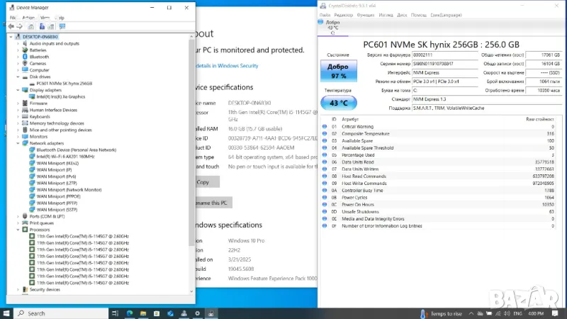 ОПЕРАЦИОННА СИСТЕМА - Оригинална лицензирана операционна система Windows 10 Pro (64-битова) - активирана. Всички ъпдейти и драйвери са инсталирани.