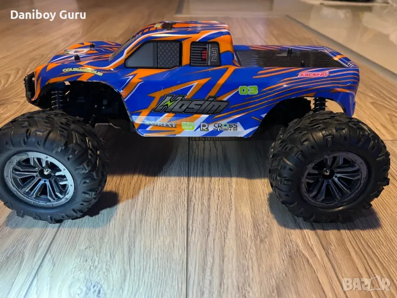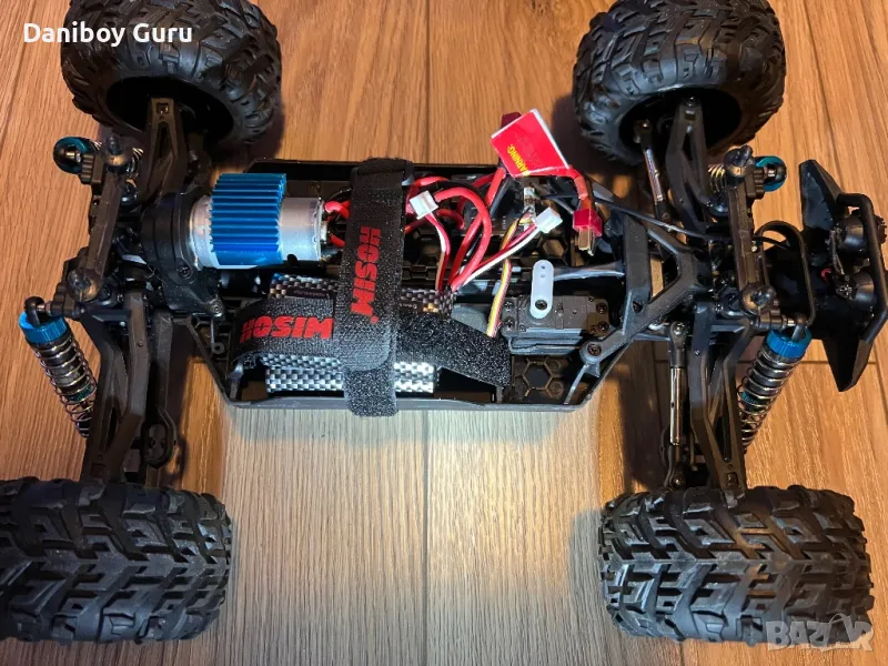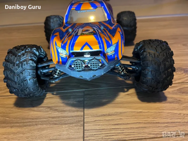 Monster Truck 4WD с мощен мотор с охлаждащ радиатор, за по- голяма издържливост, серво усилвател за управлението 2,2 кг. метален диференциал и кардан, скорости от прахова металургия, регулируеми метални биалети към носачите и амортисьори със споманена пружина и независимо окачване за по- голяма стабилност.