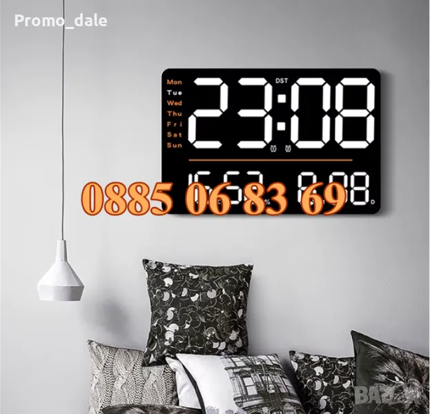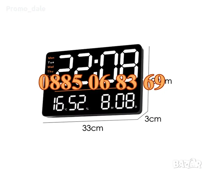 LED стенният часовник е модерен и многофункционален уред, който съчетава стилен дизайн и практичност. Този модел не само показва часа, но и предоставя допълнителна информация като седмицата, температурата и влажността на въздуха. С включено дистанционно управление.Ярък LED дисплей с големи цифри за лесно четене от разстояние.