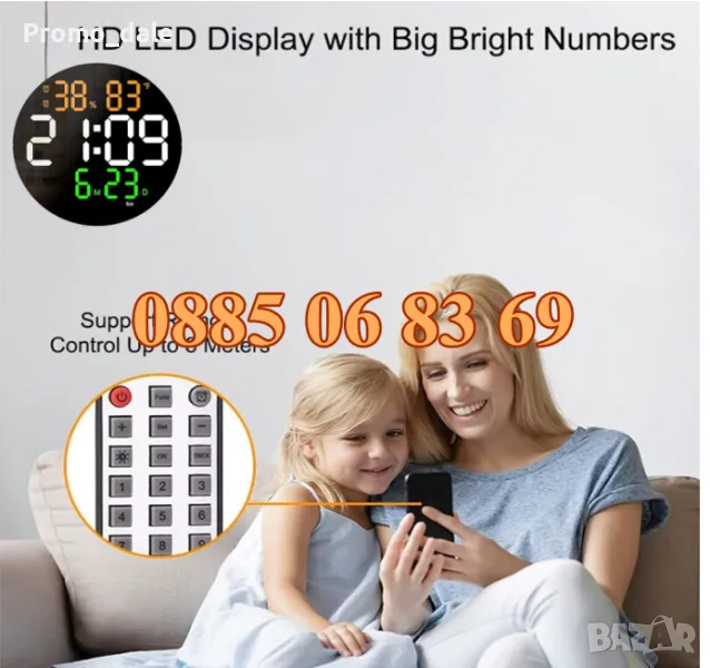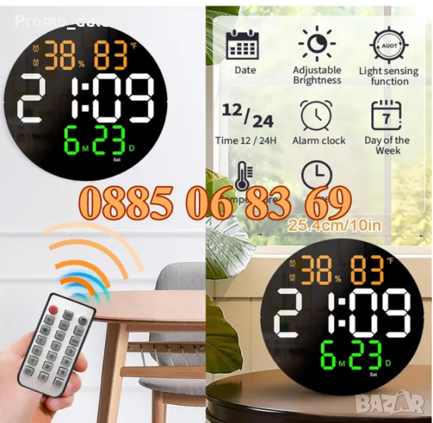 Голям дигитален дисплей: Ясни и четими цифри, видими от разстояние. Идеален за дома, офиса, училища и обществени места