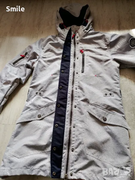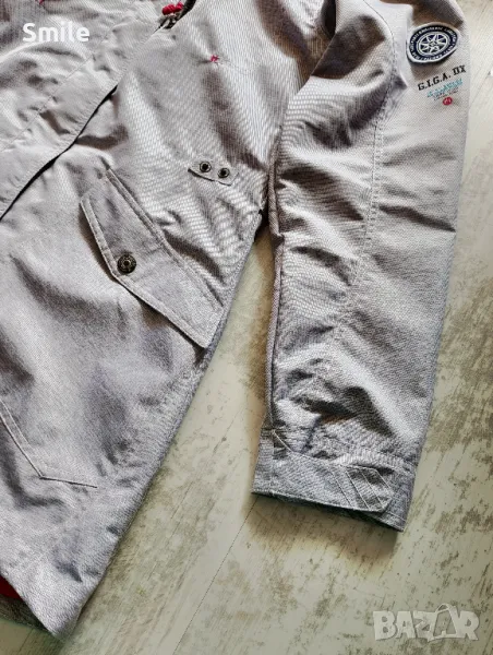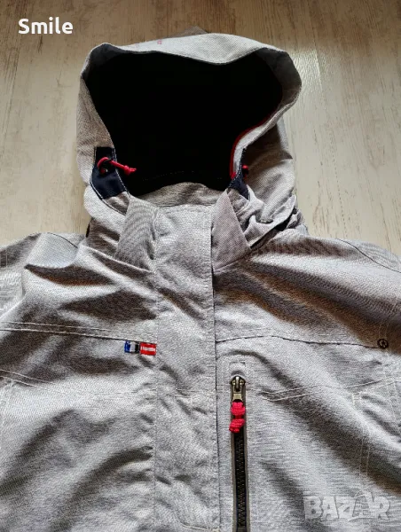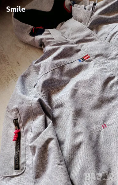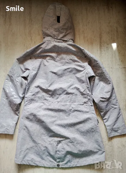 Оригинално дамско функционално яке G.I.G.A. DX by Killtec. Якето е в отлично състояние, като ново. Сваляща се качулка с цип + копчета от двете страни. Има връзка със стопери на качулката. Якето е пролет - есен, не е дебело, отлично качество. Цвят: светло сив. Маншети на ръкавите с велкро закопчаване Размер 38 / 8. Размери измерени от мен: ширина от подмишниците - 50 см., ширина в кръста - 48 см., ширина долу - 61 см. (може да се регулира, има копче), дължина - 80-86 см., дължина ръкав от подмишницата - 53 см., дължина на ръкав + рамо - 75 см.. Изпращам със "Спиди" или "Еконт
