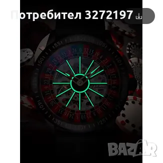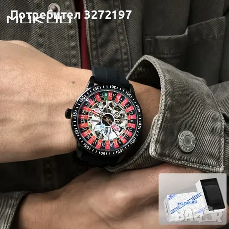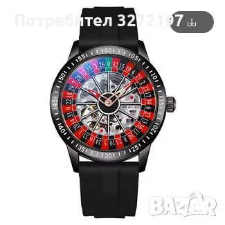 Този автоматичен механичен часовник се отличава със завладяващ дизайн на рулетно колело с червени и черни сектори, зелени числа и механични вдлъбнатини в центъра на циферблата. Дигиталната рулетка ще се върти с леко завъртане на китката и ще спре да се върти, когато китката е неподвижна. Няма бутон за управление.