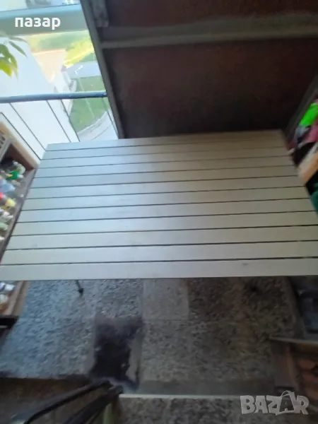 Алуминиевият комплект е почти нов сгъваем и е подходящ за излети пикници море каравани и др. Изключително практичен не заема място лек и бързо сглобяем и разглобяем може и важно материала е алуминий