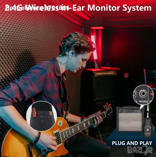 【2,4 GHz безжична IEM система】 Тази безжична система за наблюдение в ушите приема 2,4G безплатно безжично предаване в целия свят, което прави сдвояването лесно - просто включете и пуснете. Характеристики с висока стабилност на сигнала, защита срещу смущения и кратко аудио забавяне. Без падания от 50-65 фута. Предварително задайте 6 регулируеми канала за разрешаване на възможни проблеми със смущенията.