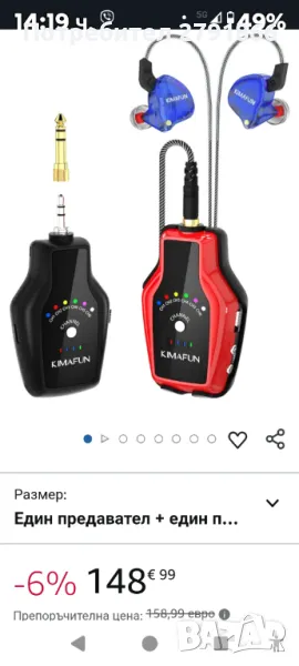 Слушалки KIMAFUN In-Ear Monitor 2.4G безжична система, стерео IEM нови