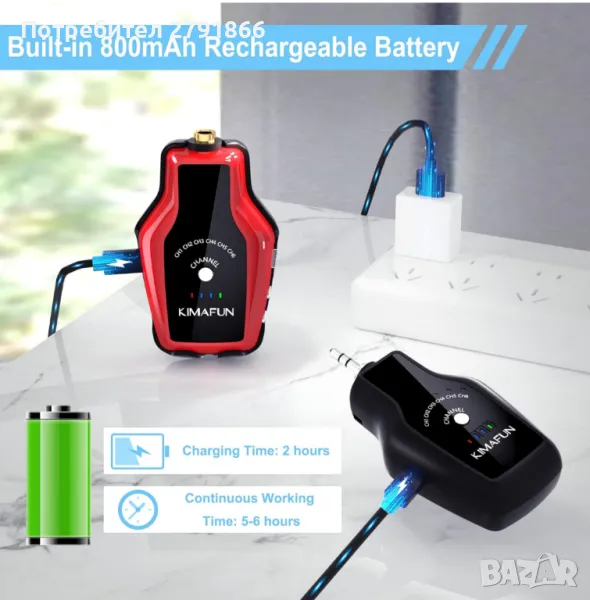 【Многократни сценарии за използване】Предавателят има 1/8" триполюсен щепсел, който е подходящ за повечето усилватели и камери за електрическа китара. Предлага се с 1/4" моно адаптер и 1/4" стерео адаптер, подходящи за повечето сценични високоговорители, външни високоговорители, звукозаписни студия и т.н. С приемащия кабел безжичната система може да се използва за синхронизиране между различни високоговорители.