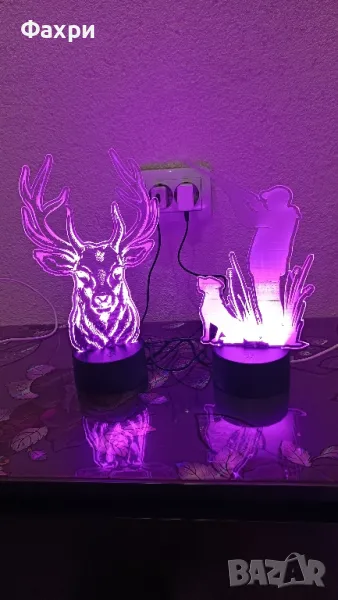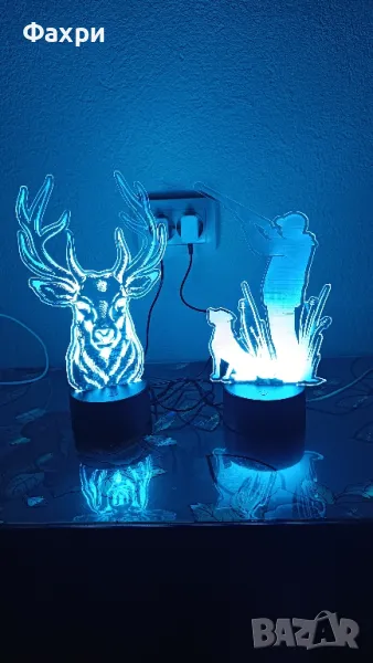 нощни лампи, създадени специално за любителите на лова и риболова! Изработени от висококачествен плексиглас, тези лампи комбинират стилен дизайн с многоцветно LED осветление и дистанционно управление.