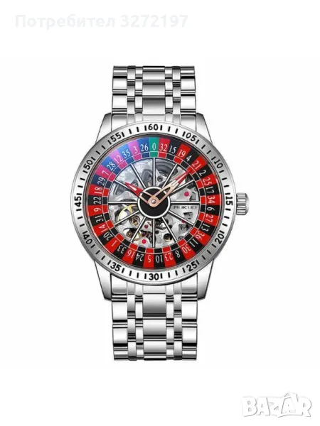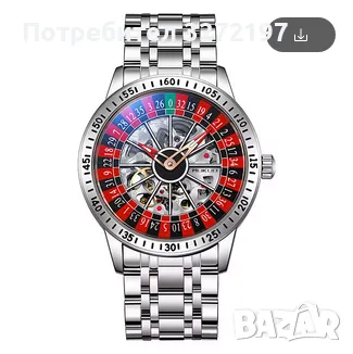 Този автоматичен механичен часовник се отличава със завладяващ дизайн на рулетно колело с червени и черни сектори, зелени числа и механични вдлъбнатини в центъра на циферблата. Дигиталната рулетка ще се върти с леко завъртане на китката и ще спре да се върти, когато китката е неподвижна. Няма бутон за управление.