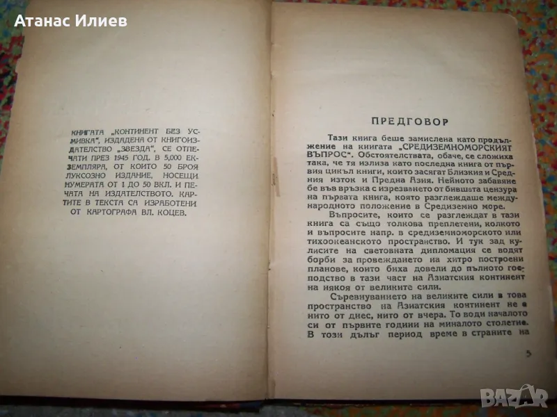 Континент без усмивка - какво става в средния изток, книга от С.А. Янчулев, първо издание 1945г. издателство "Звезда". Книгата е с твърди корици, 252 стр. Книгата е много интересна за всички които се интересуват от геополитика.
