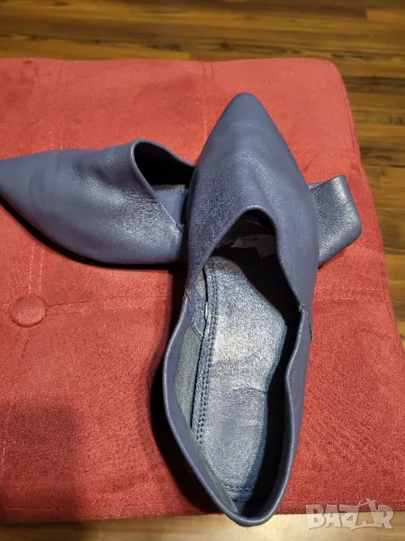 Сини обувки RESERVED тип пантовки от мека естествена кожа от вътре и от вън. Номер 36, но аз съм с тесен крак нося 37 и ми стават. Стелка 23,5см. Обувала съм ги 2-3 пъти. В много добро състояние видно и от снимките. Единствена забележка че и 2-те имат леко обелено на връхчето отпред.