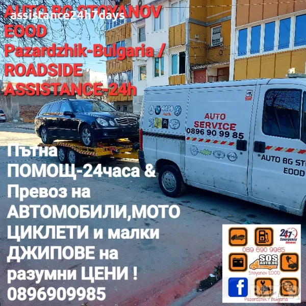 Превоз на АВТОМОБИЛИ в България и Чужбина на приемливо НИСКИ ЦЕНИ! Фирма AUTO BG STOYANOV / EOOD Pazardzhik-Bulgaria извършва транспорт на автомобили в България и Чужбина на приемливо НИСКИ ЦЕНИ! Превоз и Пътна ПОМОЩ-24часа в денонощието на автомобили във всякакво състояние! MOBILEN AUTO Service & AUTO DIAGNOSTIC SERVICE! Имам колички за блокирали колела при нарушения в сходимостта при катастрофа или друга повреда! Бързо отзоваване до 20минути за гр.Пазарджик и околността след позвъняване на посочения телефон в обявата.