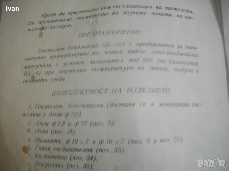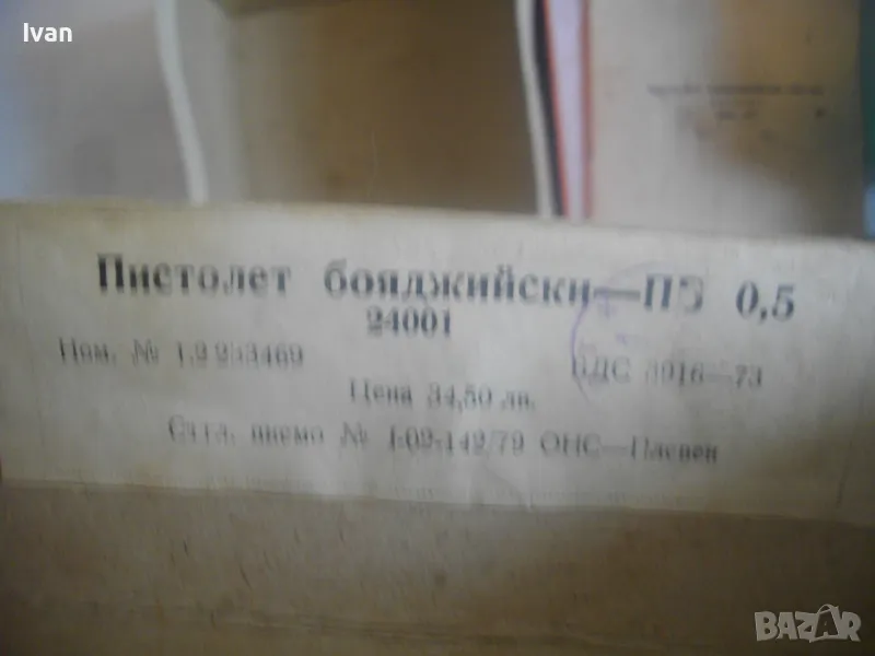 Цена на пневматичния бояджийски пистолет ПБ-0,5 от обявата - 199 лв. Ниската цена се дължи на поправката на спусъка. Цената е крайна и не подлежи на никакъв коментар.
