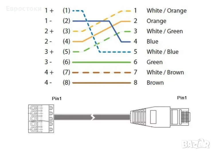 Flower Кабел RJ45 Ethernet (мъжки) към 8-пинов AV клемен пружинен адаптерен блок