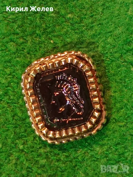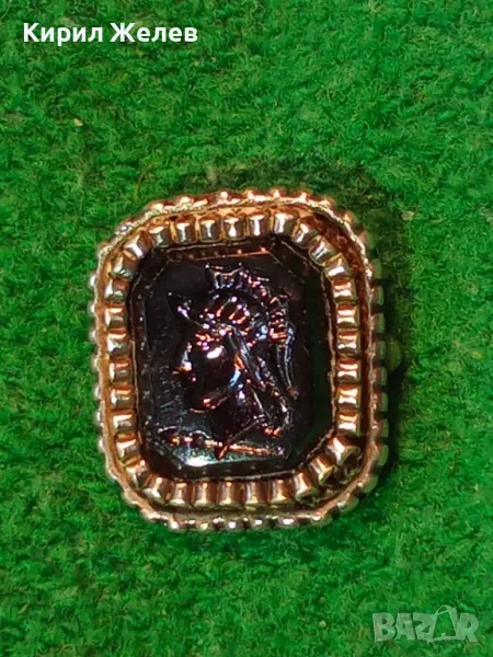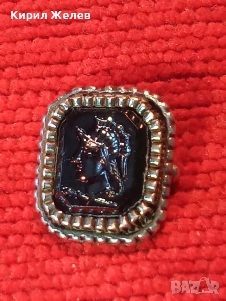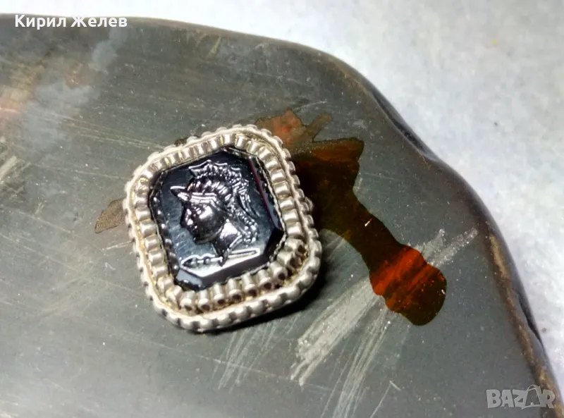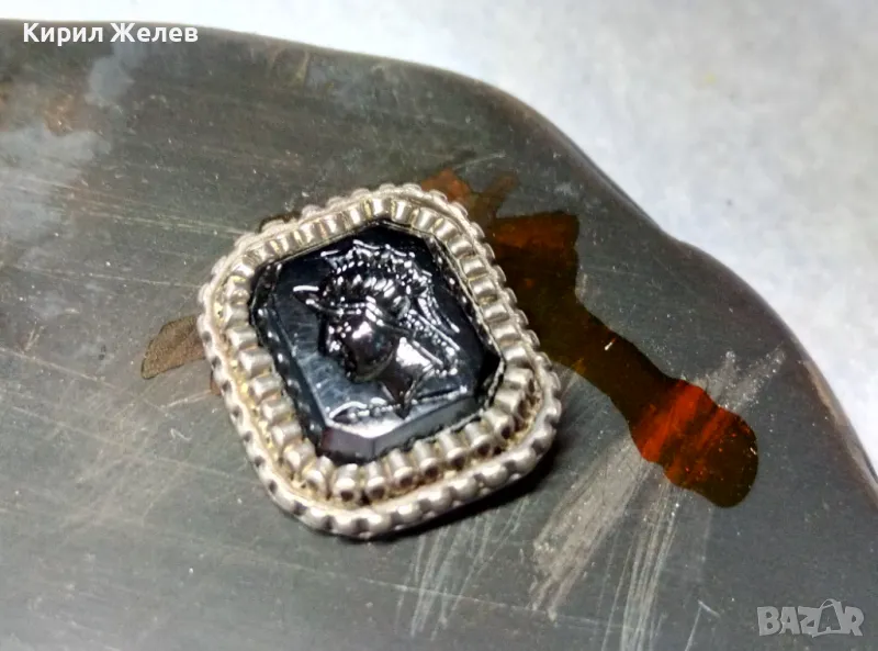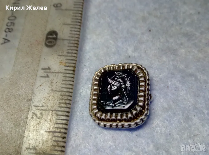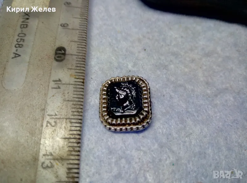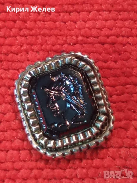 Стара СРЕБЪРНА АПЛИКАЦИЯ За ПРЪСТЕН / БРОШКА с ГЕМА / ИНТАЛИЯ ГЛИПТИКА Върху ЧЕРЕН ОНИКС 36988