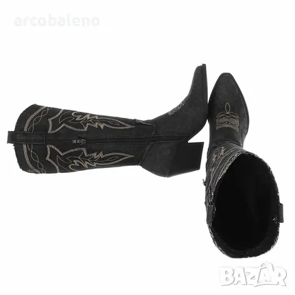 Този модерен ботуш съчетава модерен дизайн с удобно носене. Детайлната бродерия придава на обувката специален щрих и гарантира автентичен вид. Блоковата пета предлага удобна височина за носене през целия ден и осигурява комфортно изживяване при ходене. Благодарение на практичния цип, ботушът се обува и събува без усилие. Здравата изработка позволява дълготрайна употреба, докато мекият вътрешен материал повишава комфорта при носене. Перфектен за различни тоалети и поводи – стилен задължителен елемент за всеки гардероб.