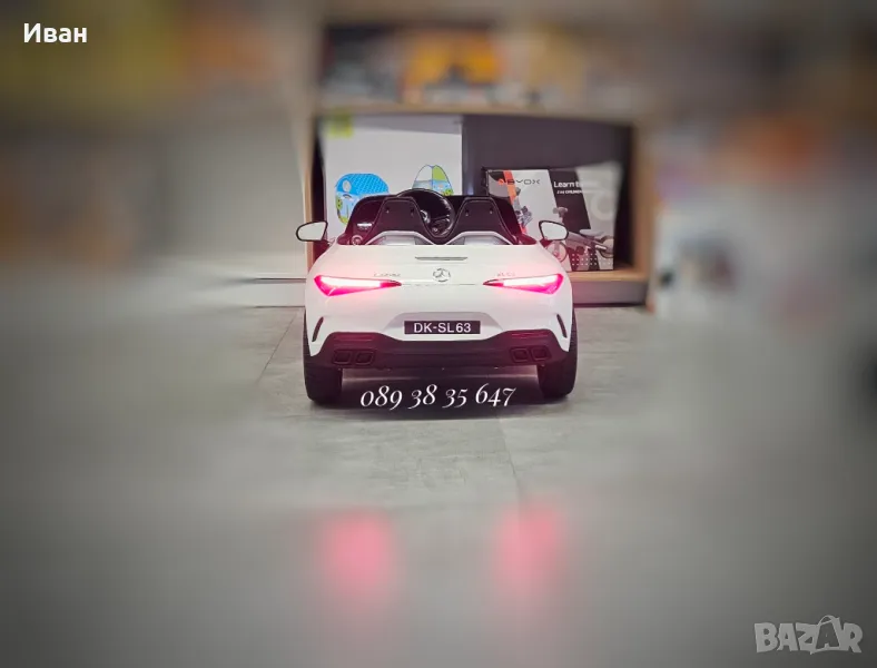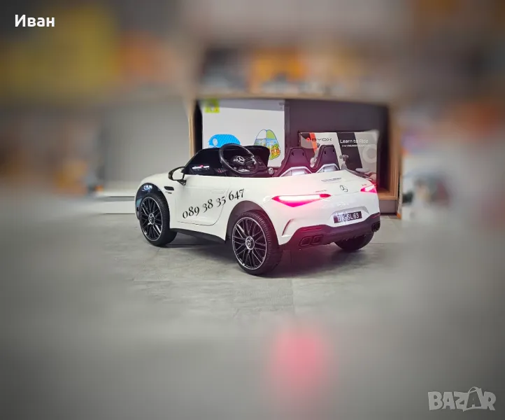 ТОП ЦЕНА!НОВО!Акумулаторна кола Mercedes SL63 AMG с 12V батерия,EVA гуми,кожена седалка → Обява 49602070