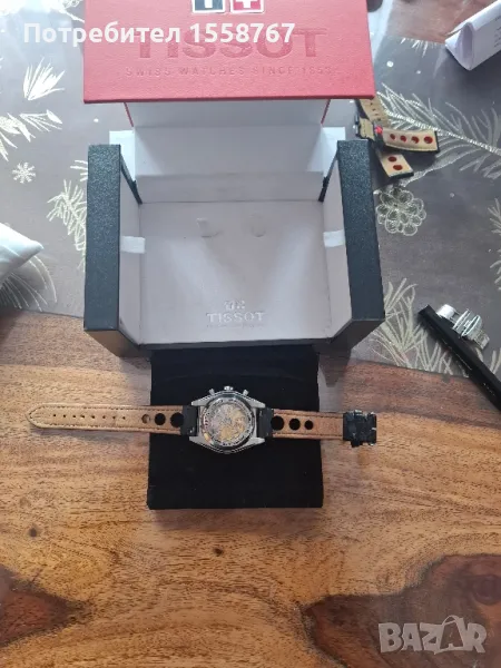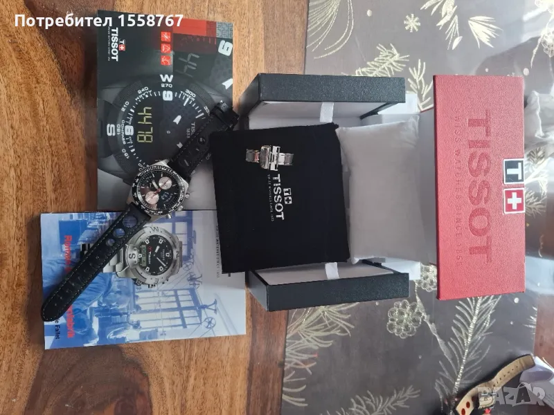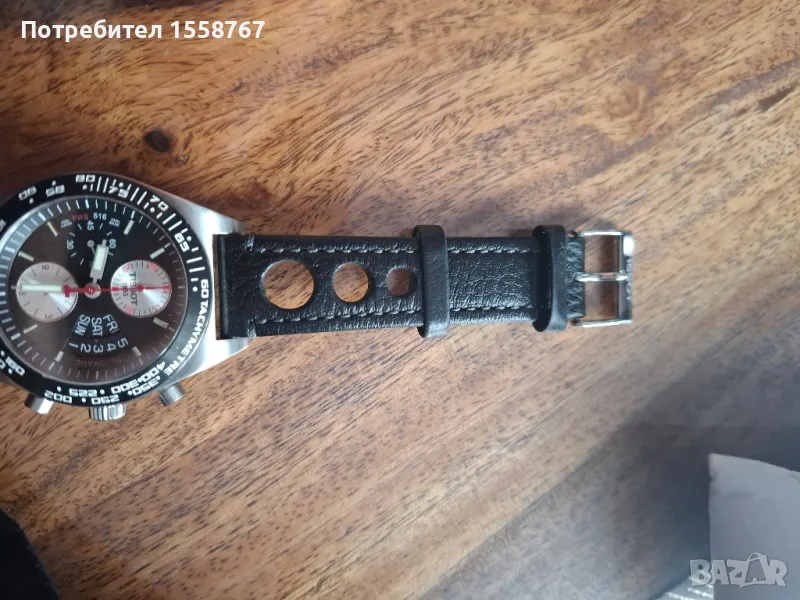 Здравейте продавам швейцарски часовник Tissot с хронограф Valjoux 7750,един от най-добрите швейцарски хронограф и правен досега.Часовникът е закупен преди пет години.Състоянието е абсолютно перфектно с много леки драскотини по корпуса отстрани ,които почти не се забелязват.Стъклото е без драскотини и без износване по него,коронката за сверяване на часовника и бутоните за пускане на хронометъра са без износване както са били в първоначалното състояние.Часовникът е с необходимите документи и фактура към него.Може да се каже че часовникът е като нов ,без удари без падания,така че механизмът е запазен и работи перфектно.Пазарана цена за нов е от около 3 000 лв и малко.Моля ако имате някакви въпроси ще ви отговоря с удоволствие