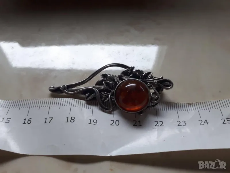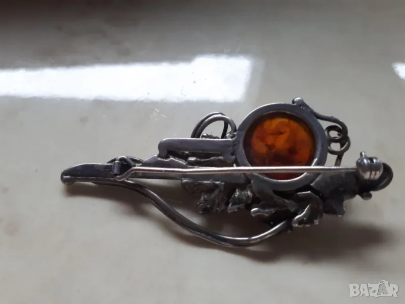 Сребърна брошка с естествен кехлибар → Обява 49603135