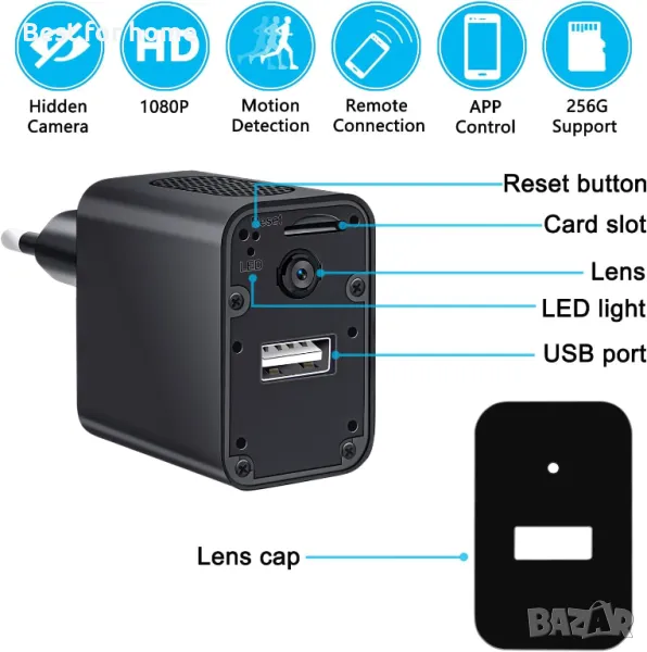 👍Истинска безопасна шпионска камера: Нашето зарядно устройство за скрита камера е защитена камера със силен протокол за сигурност и защита с парола. След като настроите wifi за камерата, сигналът на камерата също ще бъде скрит, други устройства ще имат достъп до камерата само чрез основното споделяне на устройство и няма да се прехвърлят данни от сървър на трета страна. Така че можете безопасно да използвате тази миниатюрна шпионска камера.