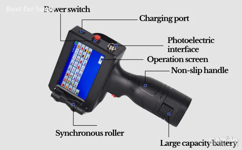 ШИРОКО ПРИЛОЖЕНИЕ: Ръчният принтер може да отговори на нуждите на различни печатни операции, като текст, число, символ, двуизмерен код, баркод, картина, час, дата, лого „направи си сам“, етикет и т.н., може да бъде отпечатан в различни материали, включително дърво, акрилен материал, плат, хартия, пластмаса, плат, етикет, кожа и др.