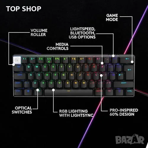 Нова Logitech PRO X 60 LIGHTSPEED Механична Клавиатура RGB Безжична