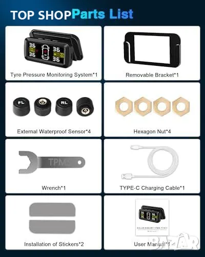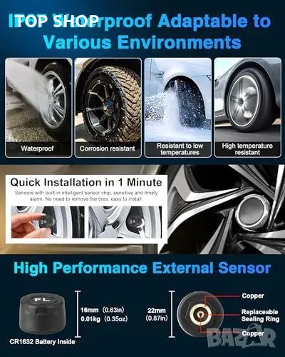 Нов Безжичен Монитор за Гуми с Външни Сензори и Различни Режими