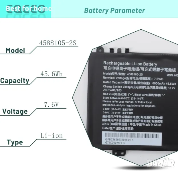 Тип батерия: Литиево-йонна; Състояние на батерията: Чисто нова ;Напрежение: 7,6 V; Капацитет: 45.6Wh / 6000mAh