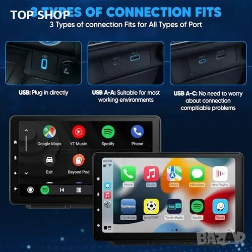 Съвместимост с iPhone и Android: Поддържа iOS 12+ и работи с над 600 модела автомобили с CarPlay.