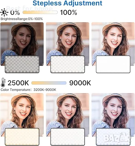 【Регулируема яркост】 Яркостта се регулира от 1% до 100% яркост за подобрен контрол. Чудесно за видео разговори, фотография, снимки, видео и вашия комплект за видеоблог. Работи чудесно като светлина за видео камера за YouTube или Tiktok.
