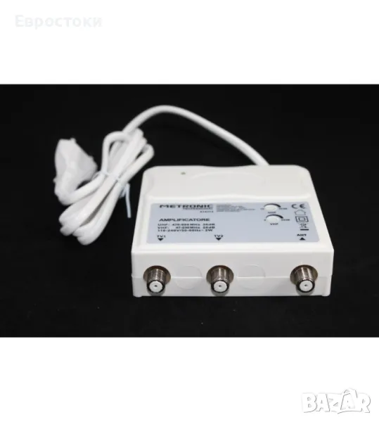 Metronic 414113 - VHF/UHF вътрешен телевизионен усилвател за DTT с LTE филтър, 5G съвместим