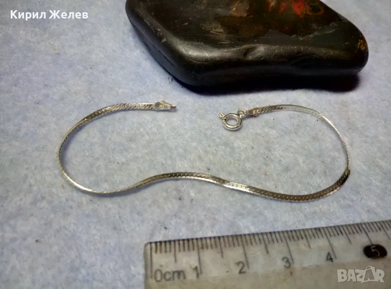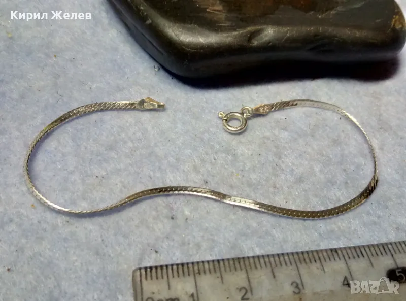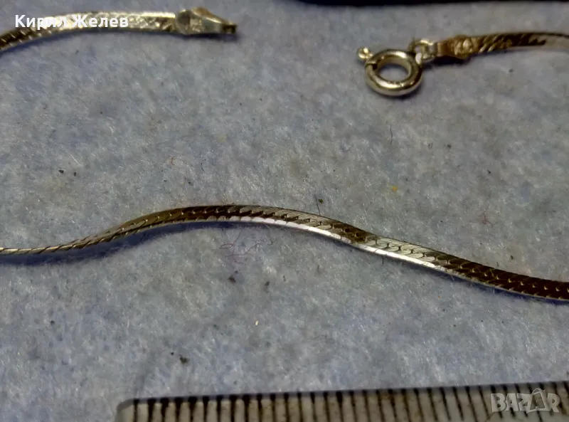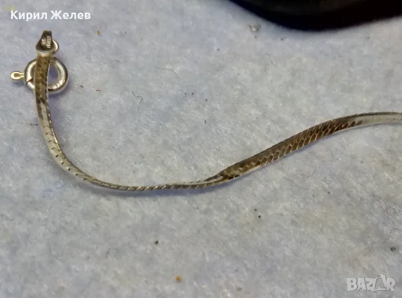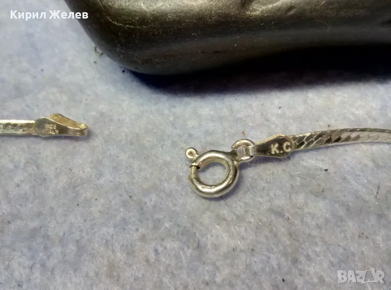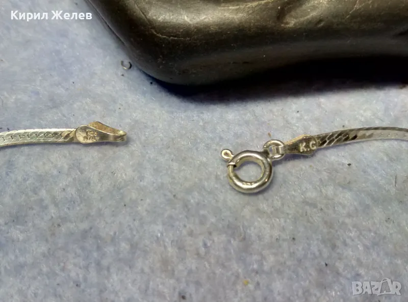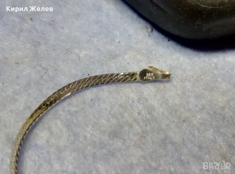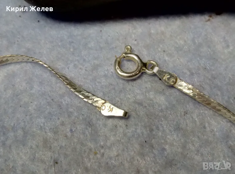 НЕЖНА ЛЕНТОВИДНА МАРКОВА СРЕБЪРНА ГРИВНА СРЕБРО 925 K. C ITALY с БЯЛА ПОЗЛАТА 20965