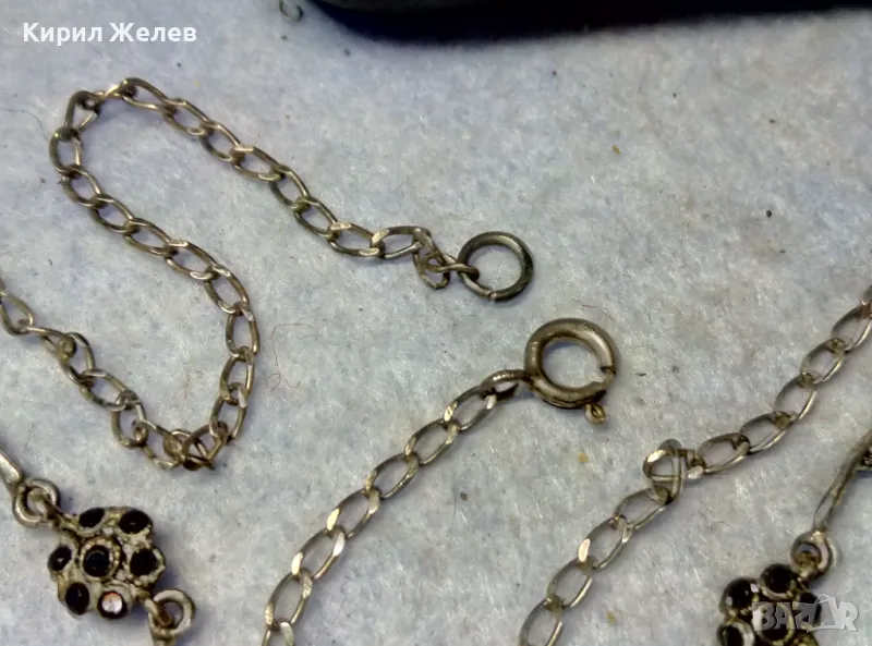 Пускам голяма СЕРИЯ от майсторска ръчна изработка старинни и нови СРЕБЪРНИ БИЖУТА - пръстени, обеци, медальони, гривни, ланци, колиета, брошки - някои са инкрустирани със скъпоценни или полускъпоценни камъни. Всичките са ТЕСТВАНИ ПРОФЕСИОНАЛНО върху лидийски камък с пробер - киселина за сребро, като особено по-старите, ръчно изработени и без маркировка които са, е заснето и резултата на камъка - яркочервеният цвят при натъркване и капване на киселината показва, че са от масивно СРЕБРО ВИСОКА ПРОБА. Има и накити от САЧАН /нископробна сребърна сплав, с която са работели старите майстори - куюмджии от периода на ВЪЗРАЖДАНЕТО и края на 19-ти век/, мед, бронз и благородна стомана с позлата или посребряване. Снимките ги ОНАГЛЕДЯВАТ! Имам НАД 27000 обяви в профила си - За ВСЕКИ по НЕЩО...! Изпращам по Еконт или Спиди с опция Преглед/Тест и отстъпка-транспорт.