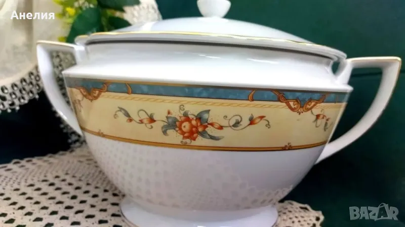 ❇️Съд за сервиране с вместимост 3.2 литра.Чудесен ! Дебел украсен жълт кант.