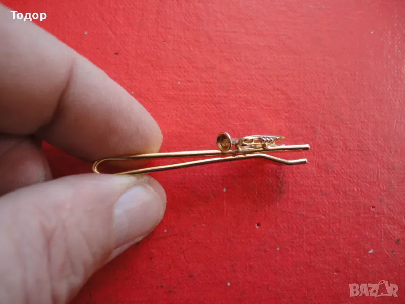 Позлатена щипка за вратовръзка тръба тромпет → Обява 49606292