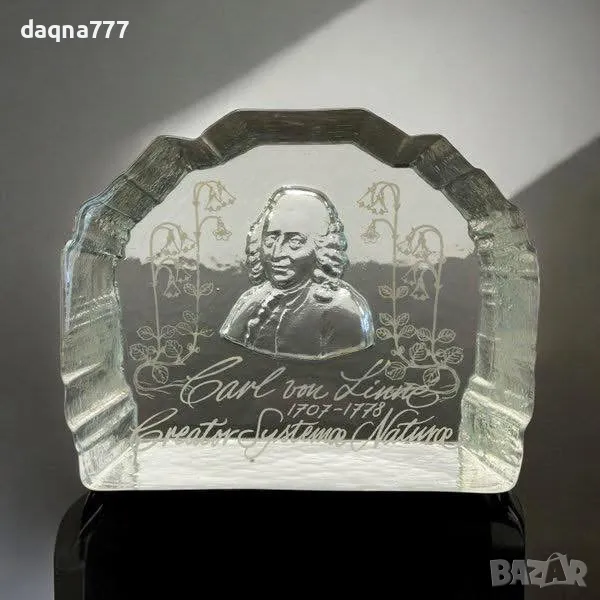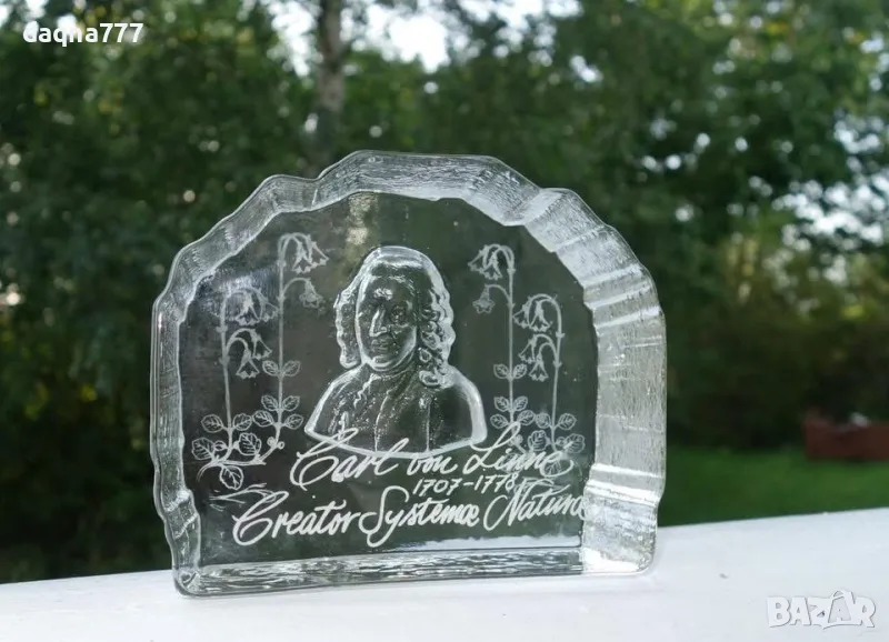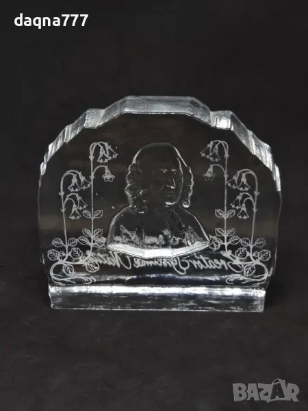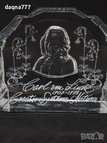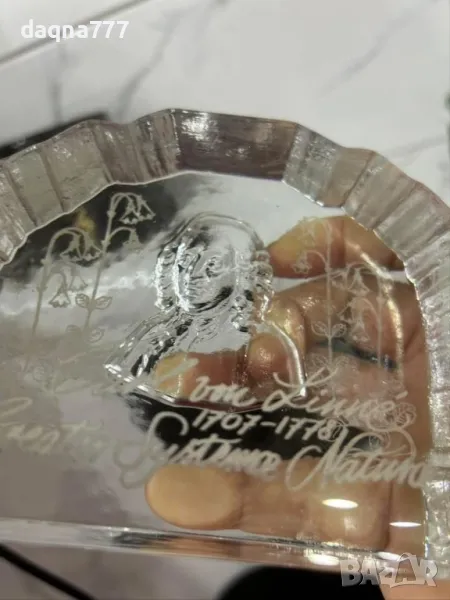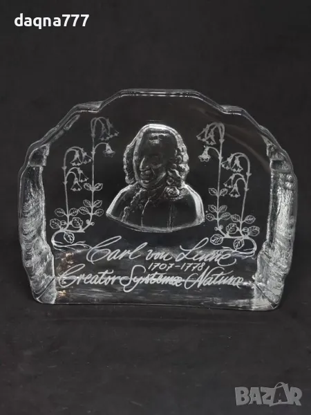 Винтидж преспапие от кристално стъкло "Carl von Linné".