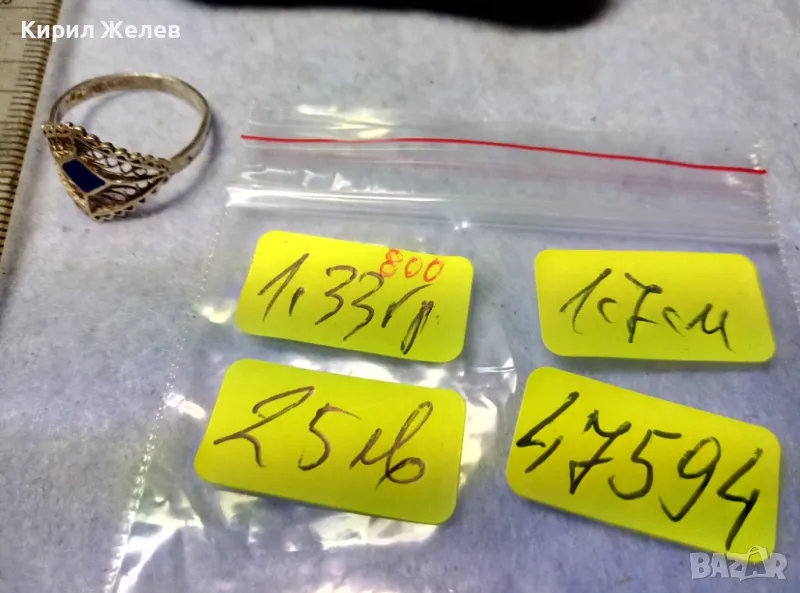 СТАРИНЕН ЕМАЙЛИРАН ФИЛИГРАНЕН ПРЪСТЕН СРЕБРО 800 ФИНА РЪЧНА РЕТРО АРТ ИЗРАБОТКА 47594
