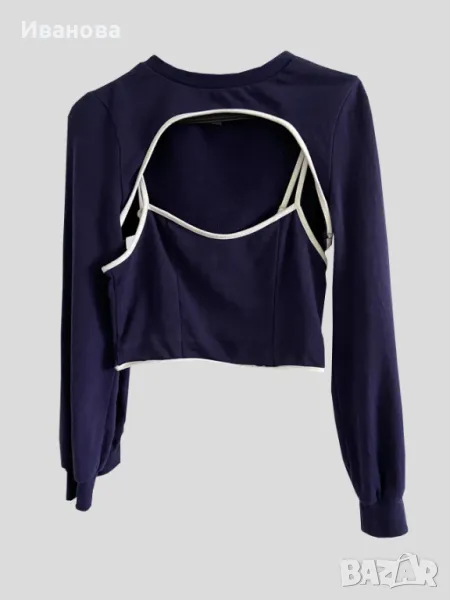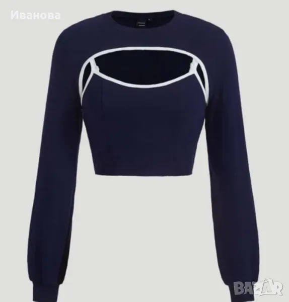 състоящ се от потник и ръкави в тъмносин цвят. Размер по етикет S. Материя 100 % памук с хубава еластичност. Много приятен на допир комплект, като
