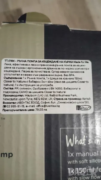Tommee Tippee Made for Me Ръчна помпа за изцеждане на кърма детска бебешка → Обява 49608325
